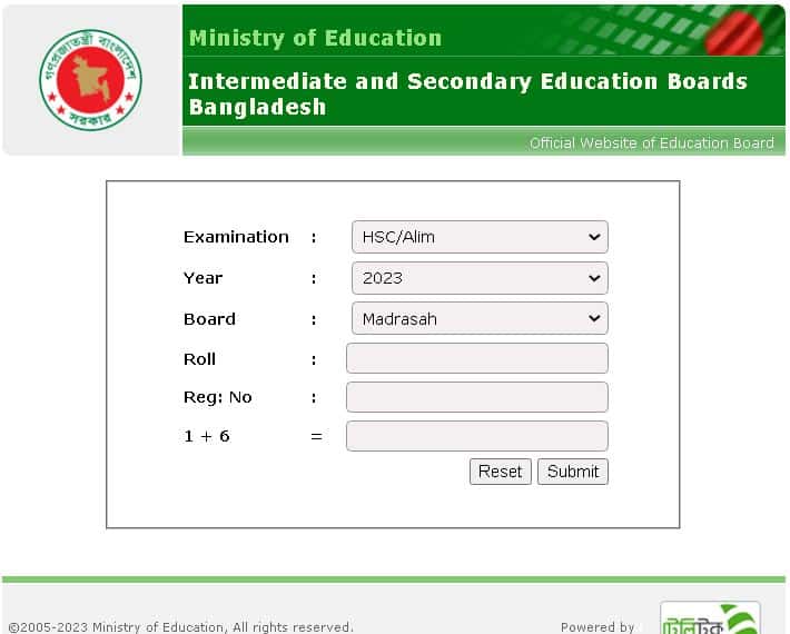 অনলাইনে আলিম পরীক্ষার রেজাল্ট দেখার জন্য নিচের তথ্যগুলো পুরন করার মাধ্যমে আলিম পরীক্ষা রেজাল্ট বের করে নিন।