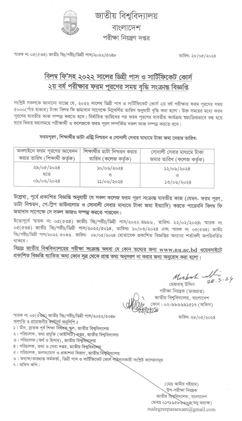 Students who will participate in examination 2024 for the session 2022 degree regular and private students can apply for this notice.
