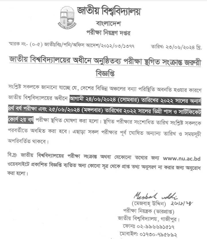 পরীক্ষা স্থাগিত সংক্রান্ত নোটিশ