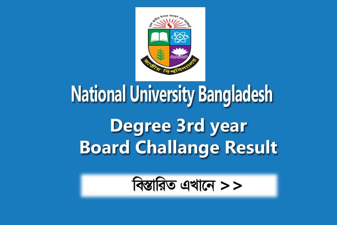 Degree 3rd-year board challenge Result 2024 (session 2021) has published on 25/05/2024. Degree pass and certificate course 3rd-year board challenge result has been published. Students who have applied for the board challenge their results published by the National University.