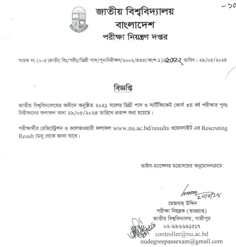 ডিগ্রি ৩য় বর্ষ পূন: নিরীক্ষনের রেজাল্ট প্রকাশিত হয়েছে: 29/05/2024। রেজাল্ট চেক করতে নিচের ইন্সট্রাকশন ফলো করুন।