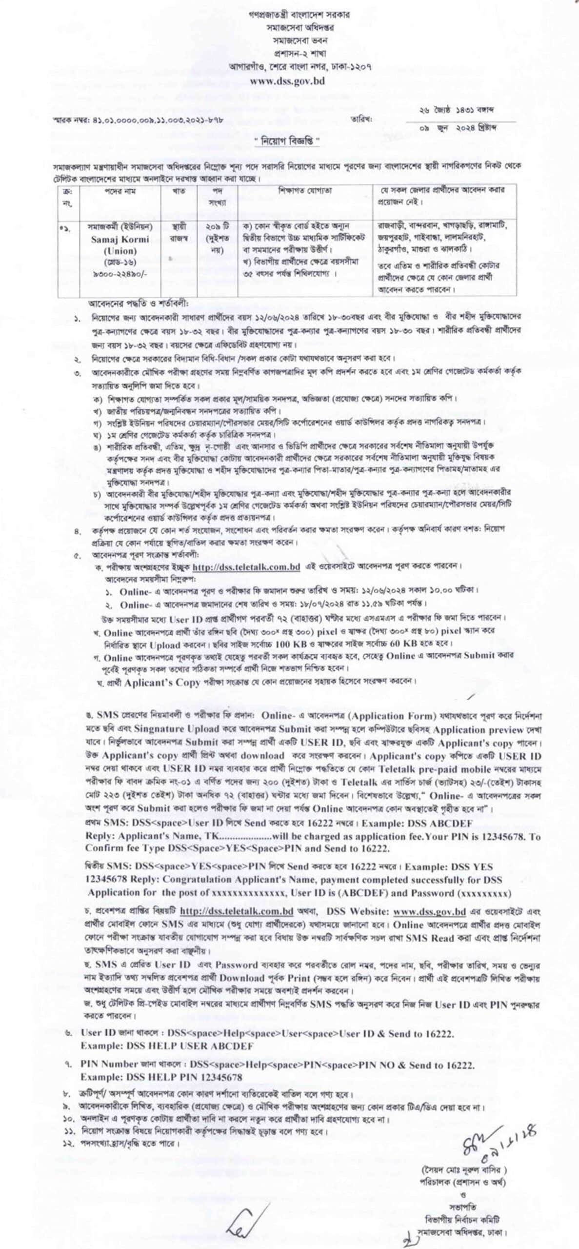 So if you are interested in this recruitment notification of the social services department then you can submit your required documents here online. “dss job circular 2024 somajkormi”. (DSS job circular union somaj kormi)