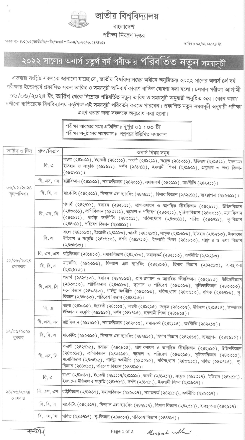 Students who are starting in National University of Bangladesh on Honours 4th year. They are exam routine has been published ia few days ago. But recently the university authority has been changed the exam schedule.