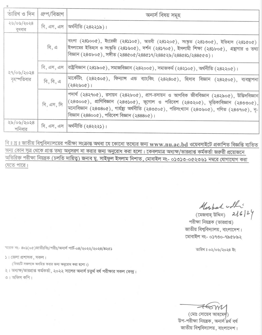 Follow the below instructions to download Honours 4th year exam routine 2024 for the session of 2022.