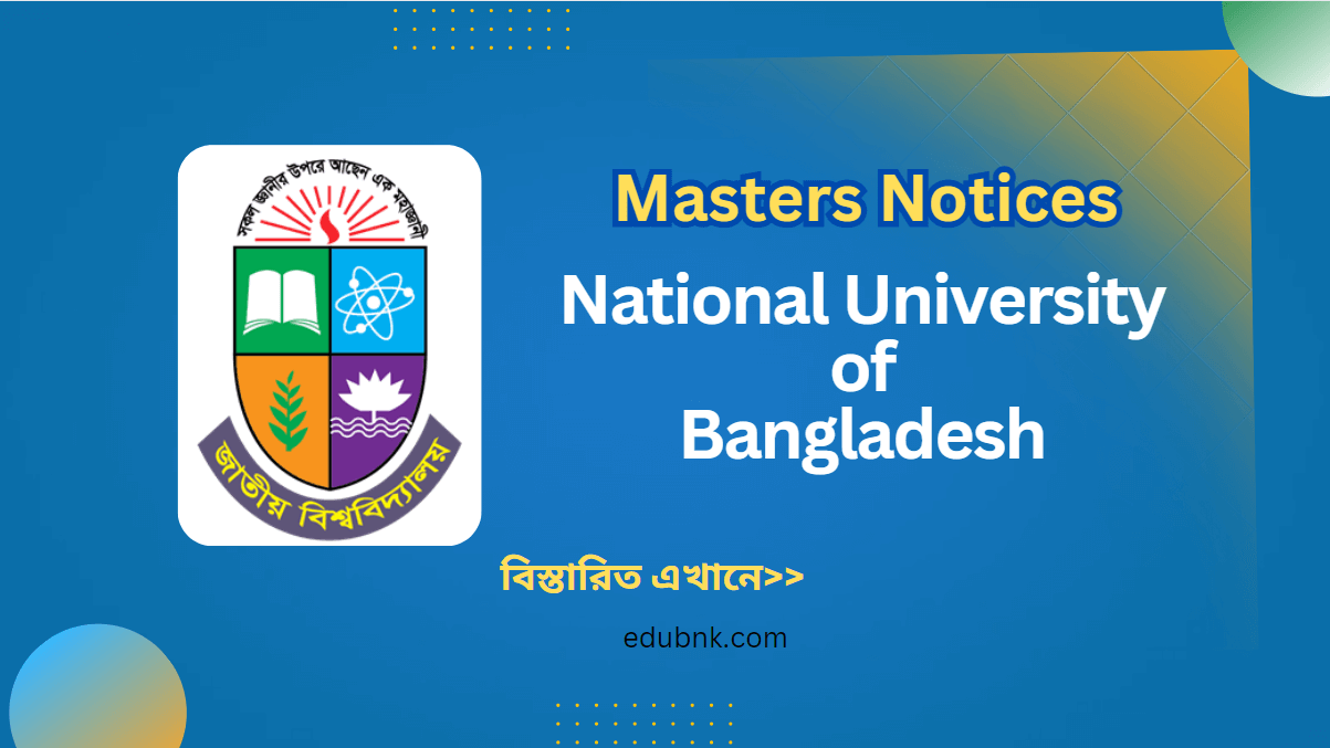 Masters admission, form fills up, routine and exam result related notices under the National University of Bangladesh. For students who are studying in a master’s program at the National University, their notice is updated here.